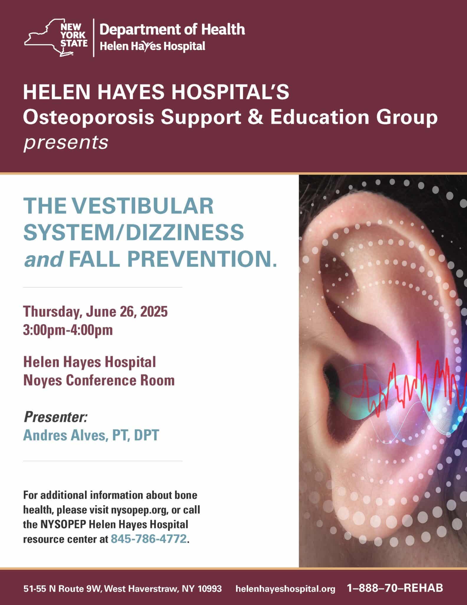 Third Thursday of each month, 4:00-5:00pm, Helen Hayes Hospital Auditorium **Please note June 2025 meeting is on fourth Thursday of month***